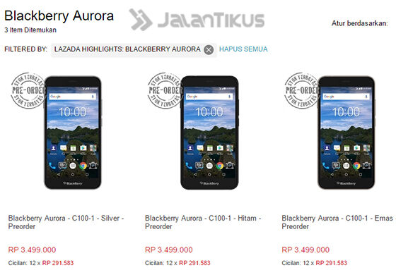 Benar, situs e-commerce Lazada dan Elevania sudah mem-posting BlackBerry Aurora dengan sistem pre-order. Kedua situs tersebut menyediakan varian warna antara lain Silver, Gold, dan Black. Terus, kapan barangnya akan dikirimkan?